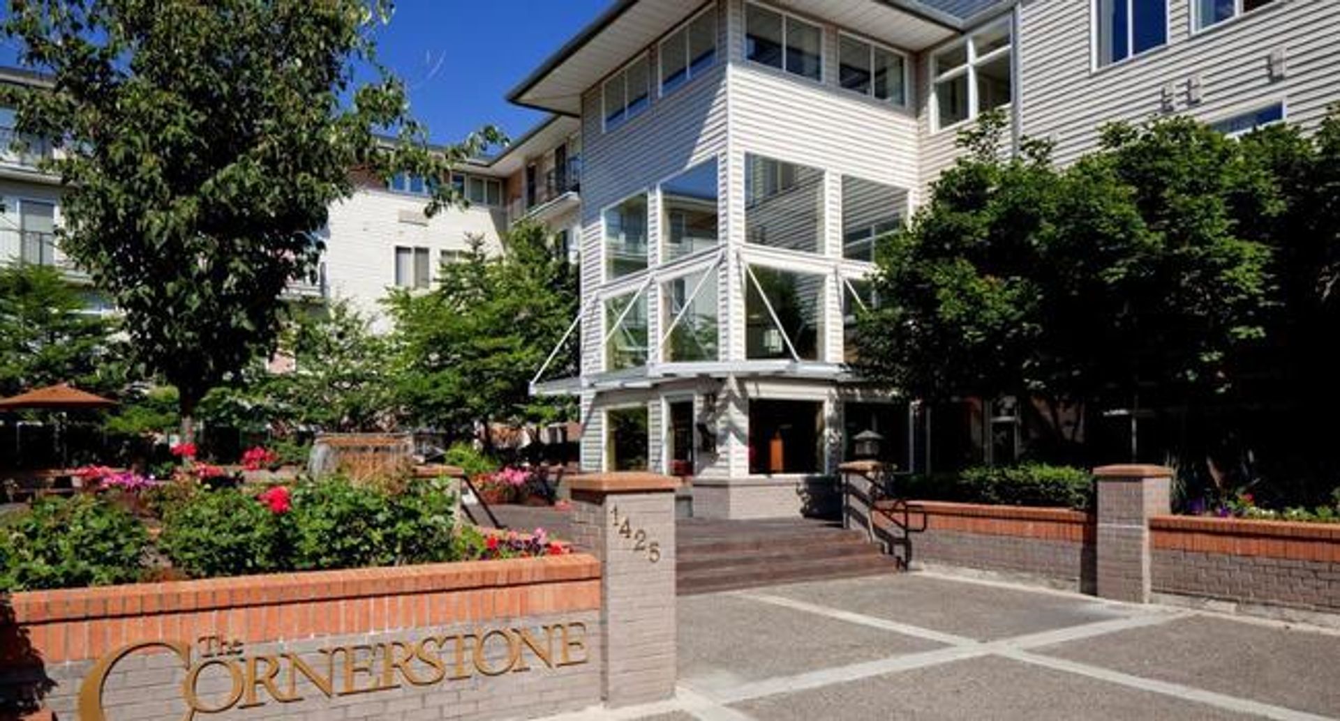Cornerstone offers a pet-friendly, smoke-free environment with modern amenities like a fitness center, community lounge, expansive sun terrace, secure garage parking, and bike and storage options.