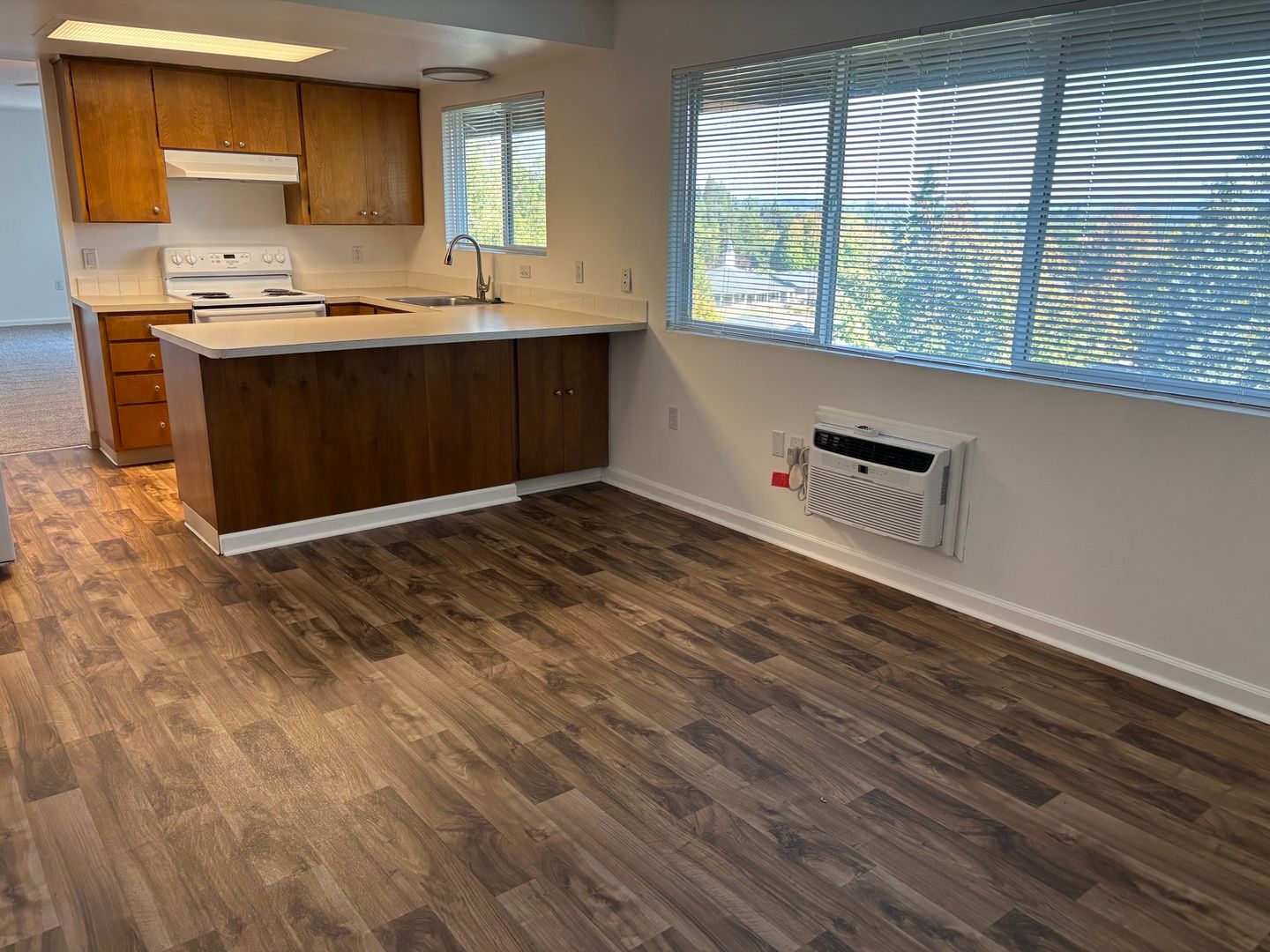 Enjoy the view and the evening lights from your large patio and your formal living room that is over 16 by 15 foot and opens into your dining space with air conditioner.